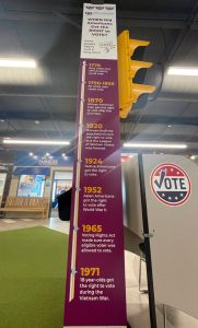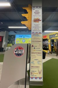 In 2025, JA offered the LWVPGH an additional opportunity to promote the League and civic education with the visual display of a full interior building structural column “wrapped” on four sides with civic education information. The information is targeted for the middle school student age group but is relevant to all ages that experience Biz Town including teachers, parents, volunteers, and other Biz Town corporate partners. Included in Biz Town visitors are many state and local government officials who get a first hand look at the LWV’s nonpartisan messaging and our student-focused activity. (Photos of Pillar #1 and Pillar #3 below.)